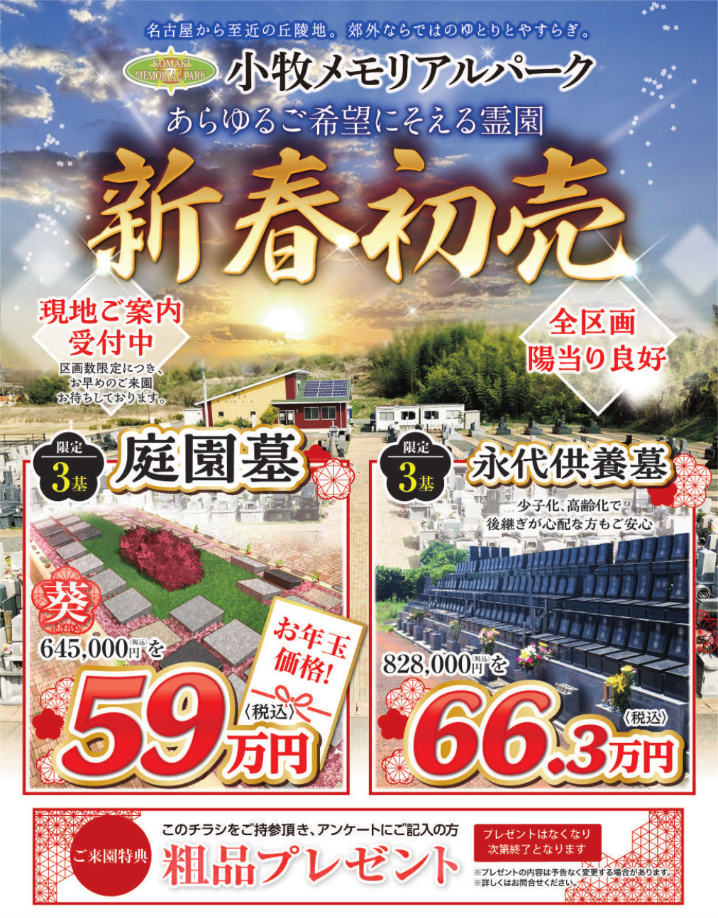 小牧メモリアルパーク【あらゆるご希望にそえる霊園】【新春初売】